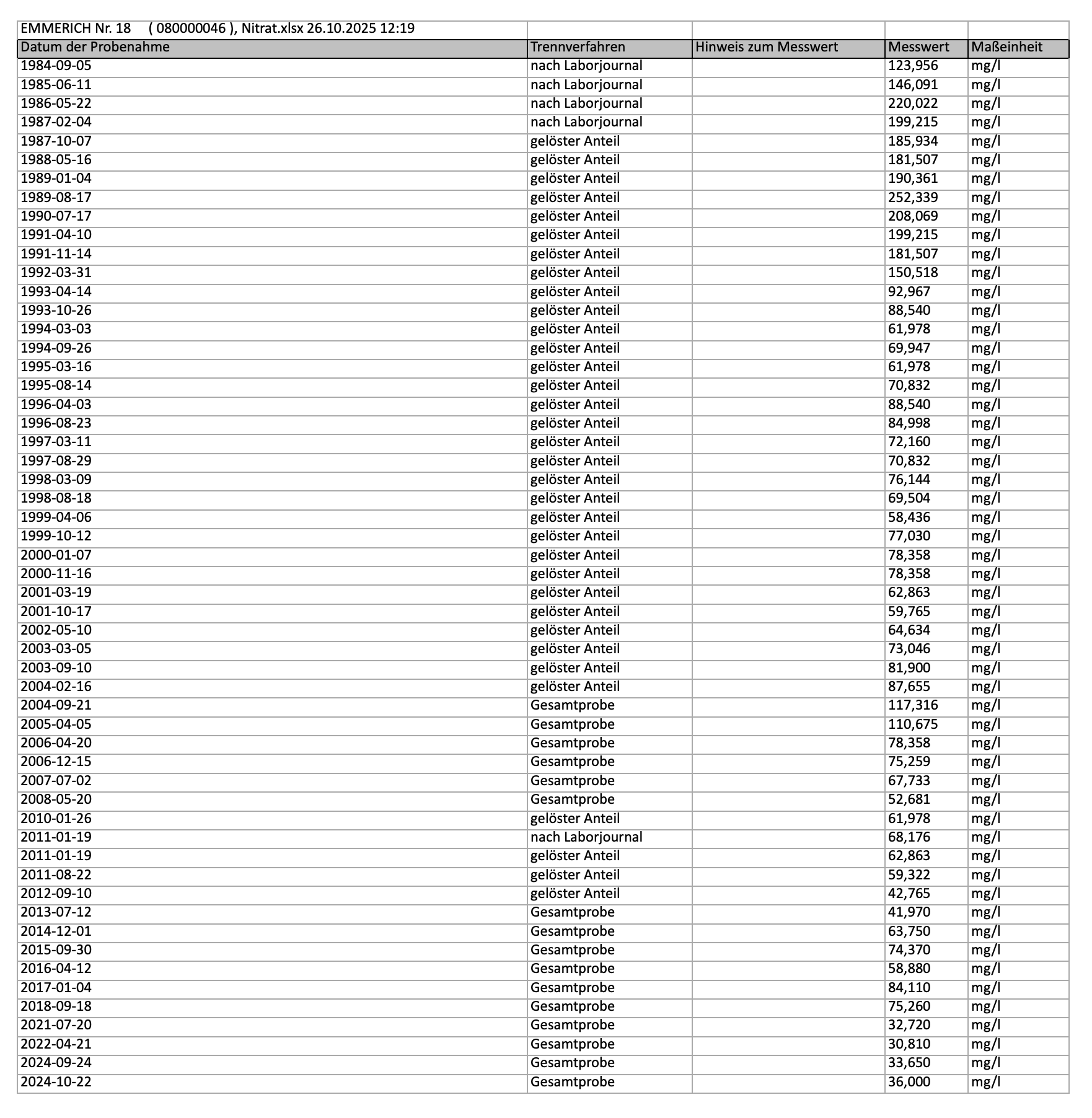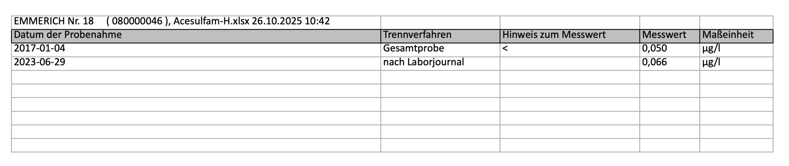 Die Ergebnisse dieser Befahrung durch die Stadtwerke Emmerich wurden dem LANUK zugesendet, was es uns am 06.11.2025 in einer Mail bestätigt hat. Es sieht dabei, aufgrund der hydrochemischen Analysen, keine Anzeichen von Punkteinträgen.